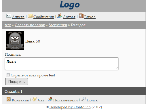- Возможность скрыть подарок от всех кроме получателя