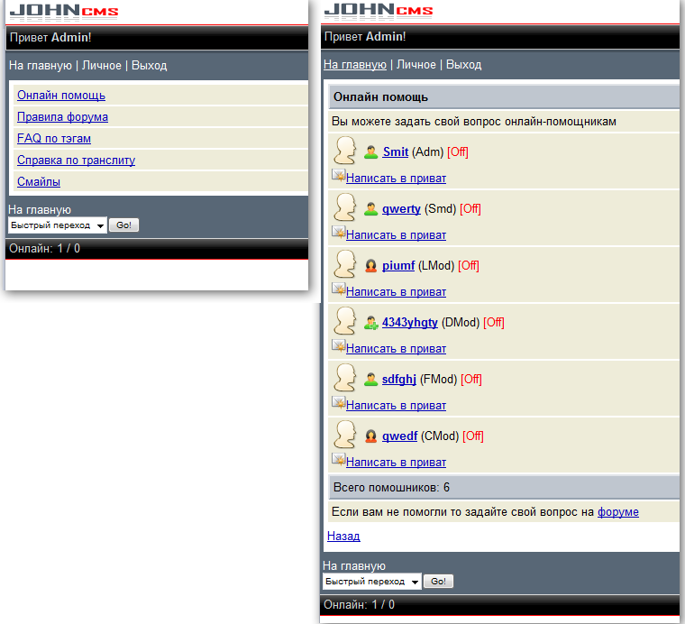 Онлайн помощь для JohnCMS 3.2.2. by ReaLs