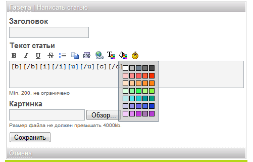 Просили сделать панель ббкодов при создании и редактировании. Воть, вроде работает ![]()