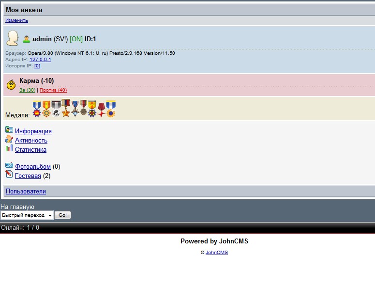 Щас написал очередной скрипт. В анкете у каждого юзера выводятся медали, число которых зависит от постов в форуме. Чем больше постов, тем больше медалей)