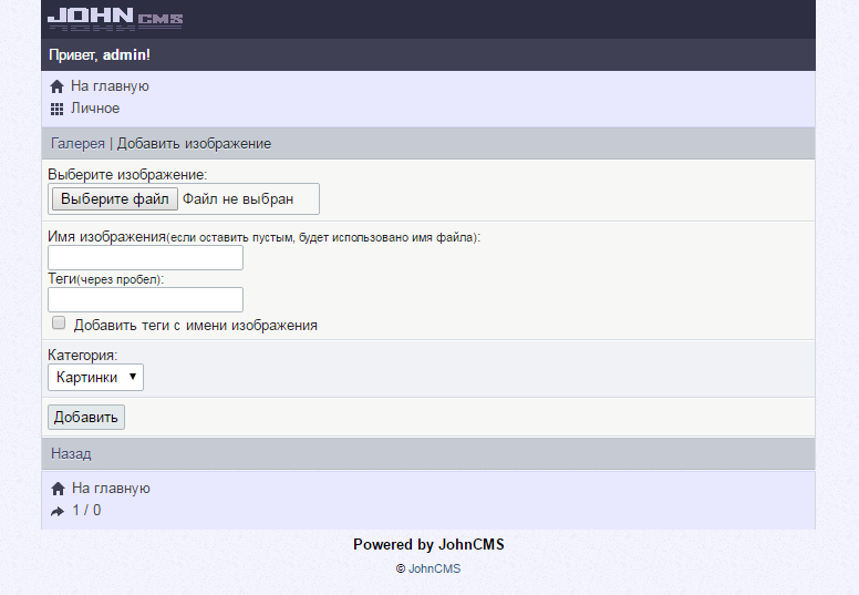 8. Удалить /gallery/install.php и можно пробовать грузить первые Изображения!