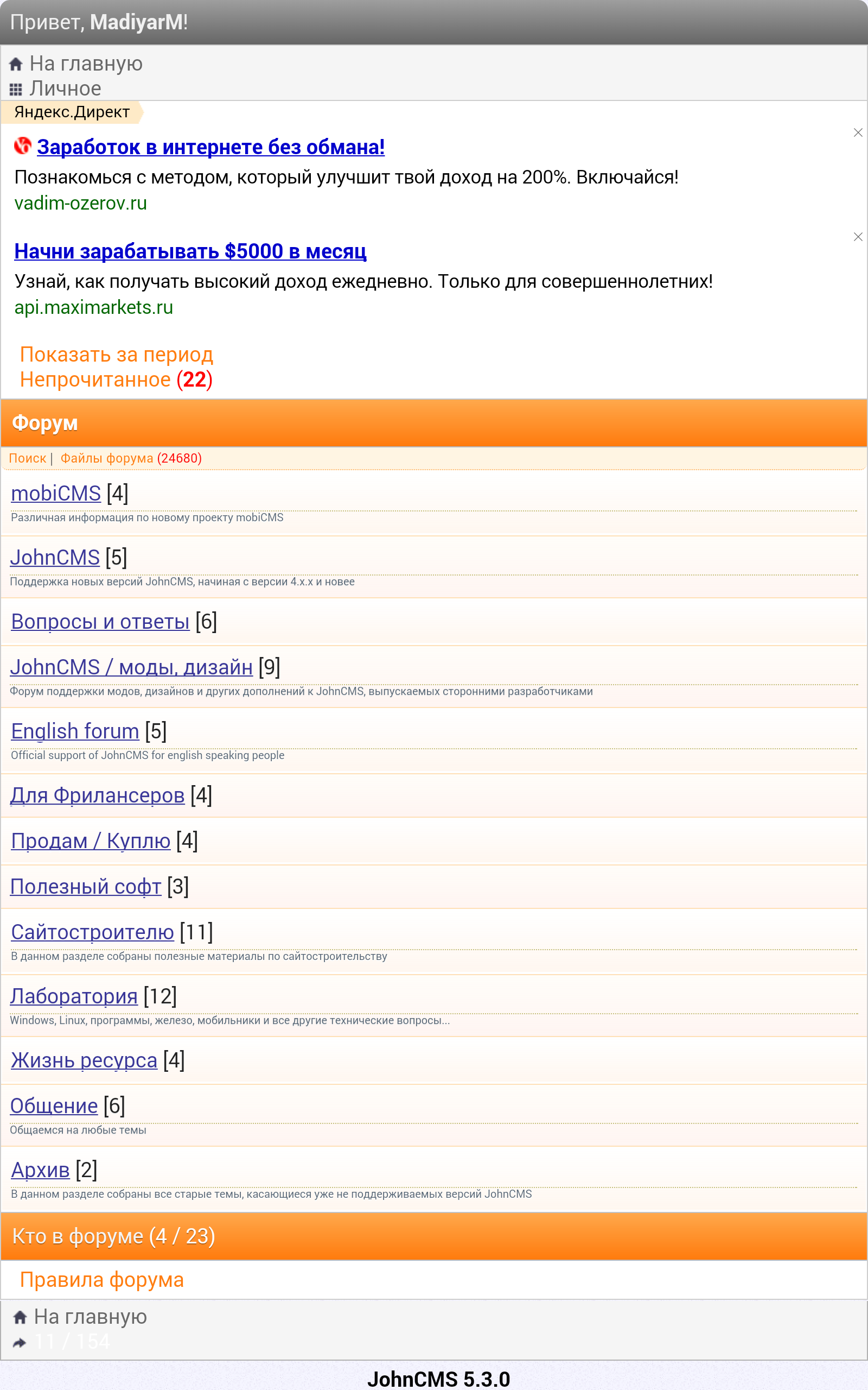 Клиент JohnCMS для Android x2