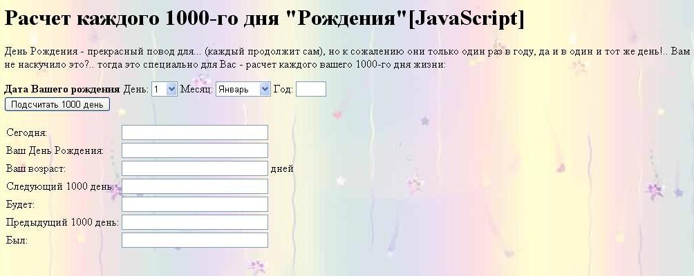 Расчет каждого 1000-го дня "Рождения"