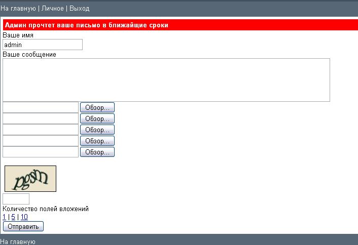 DaRkWe1L, туда могут писать гости и прикреплять файлы, гость вводит капчу, файлы можно грузить любых типов, имена файлов или даже расположение узнать не возможно в принципе, даже если и узнать, доступ по http закрыт и эти файлы сможет скачать только админ