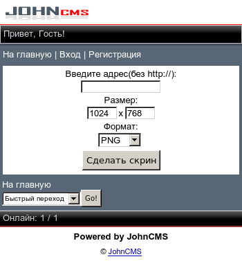 Описание: Точная копия сервиса scr-on.tk работающия на JohnCMS.