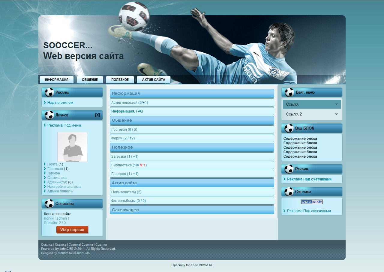 Вложил один пустой блок для примера , с комментариями , блоков много не делал , думаю каждый заточит под свой сайт ...
