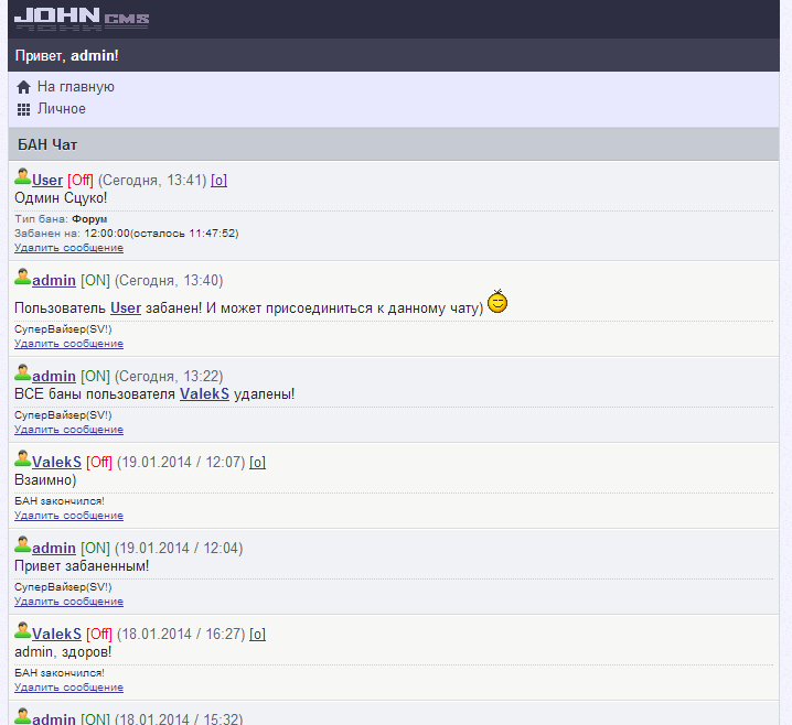 НО! Если вставить код из заменяемых файлов в свои файлы, то ХАК будет работать и на других версиях JohnCMS!