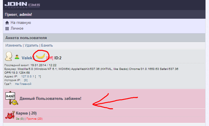 Хак оповещение о БАНе юзера