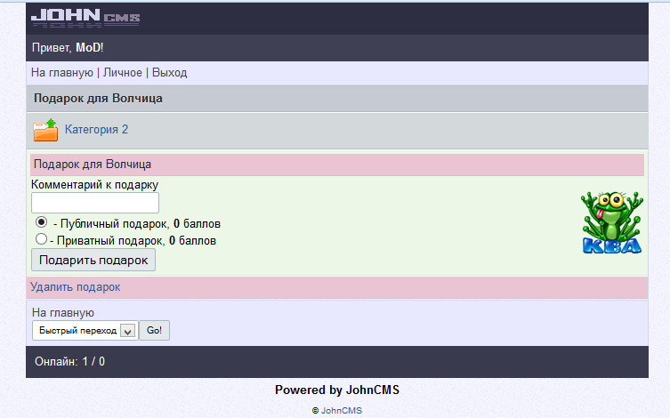 14. Перейти по адресу ваш_сайт.ру/gifts/install.php