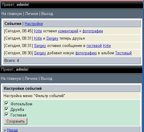Пока подключены к модулю: фотоальбомы, друзья и личная гостевая.