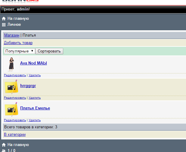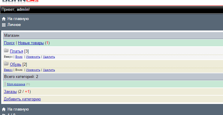 Модуль "Витрина товаров" for JohnCMS 6.1.2
