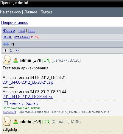 предложения принимаются, папку для архивов для удобства положил в папку форума, можно переписать на папку файлов