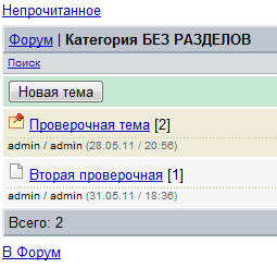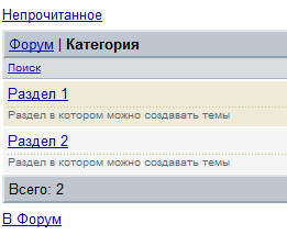 Учтите, что если вы в админ-панеле измените тип категории с "Темы" на "Разделы", когда в категории уже будут присутствовать темы, то после изменения типа категории эти темы будут не доступны(!). Для доступа к ним, их потребуется перенести в другие категории/разделы.