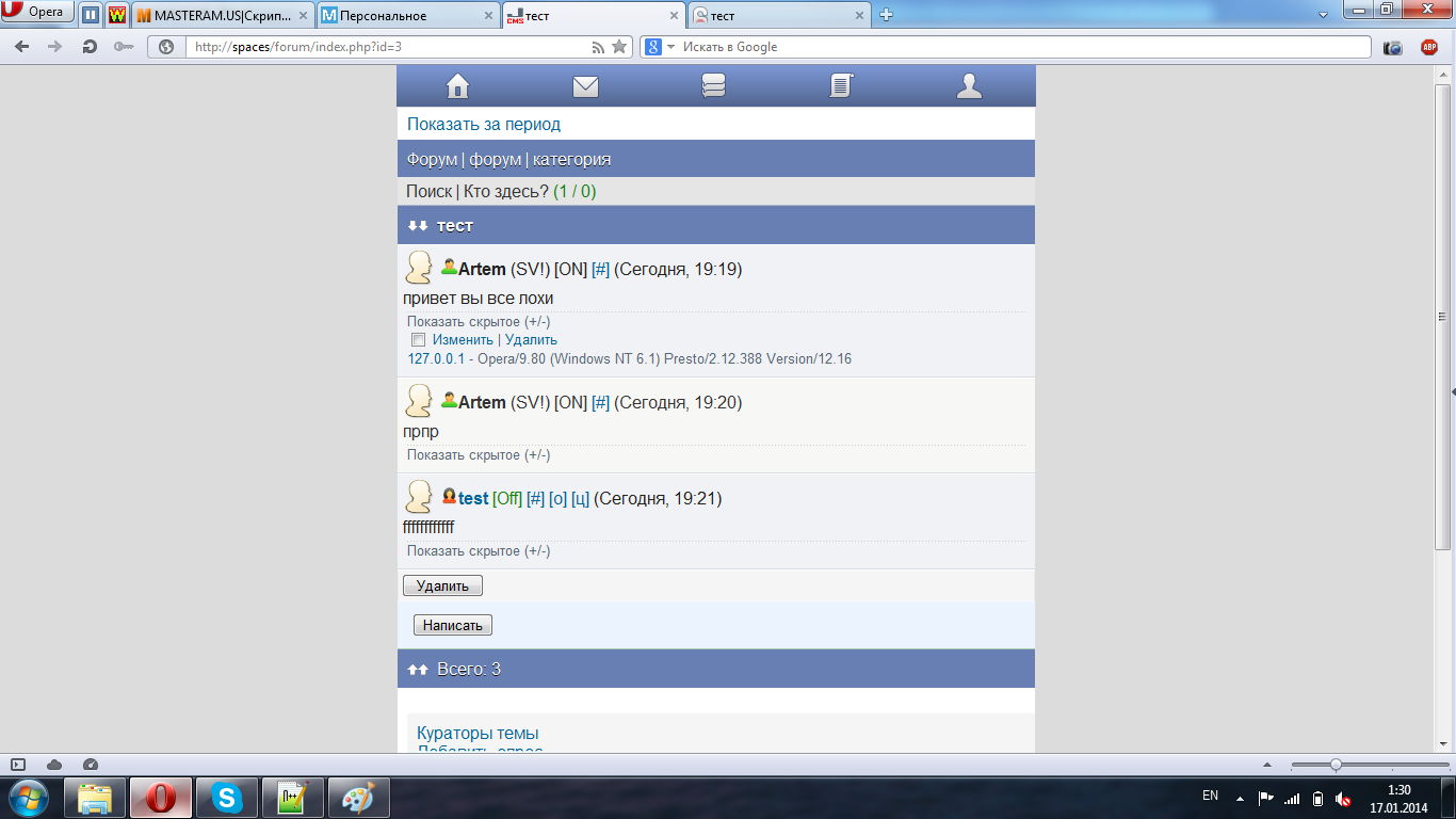 Данный хак скрывает инормацию о браузере, Адрес IP и т.п под спойлер. На форуме не работает, позже выложу для форума!