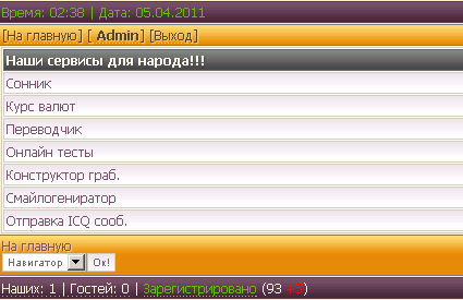 Привет друзья! Вот решил выложить еще один мод сервисы на сайт мод не большой сервисов не много но зато нормальные восновном там граберы да тесты есть отправка ICQ сообщении только номерок поменяете ато там мой стоит