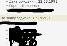 kiereal (04.10.2011/12:39)ну, мне нравится всё, что доступно из самой анкеты без дополнительных действий... / что, слишком конфиденциальная информация, что скрыть пришлось?