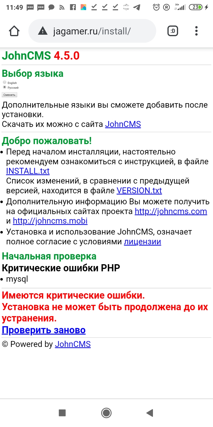 Изначально ставил бекап 4.5.1, не мог понять в чем проблема. Решил поставить чистый двиг. Результат на скрине. Как решать эту беду?