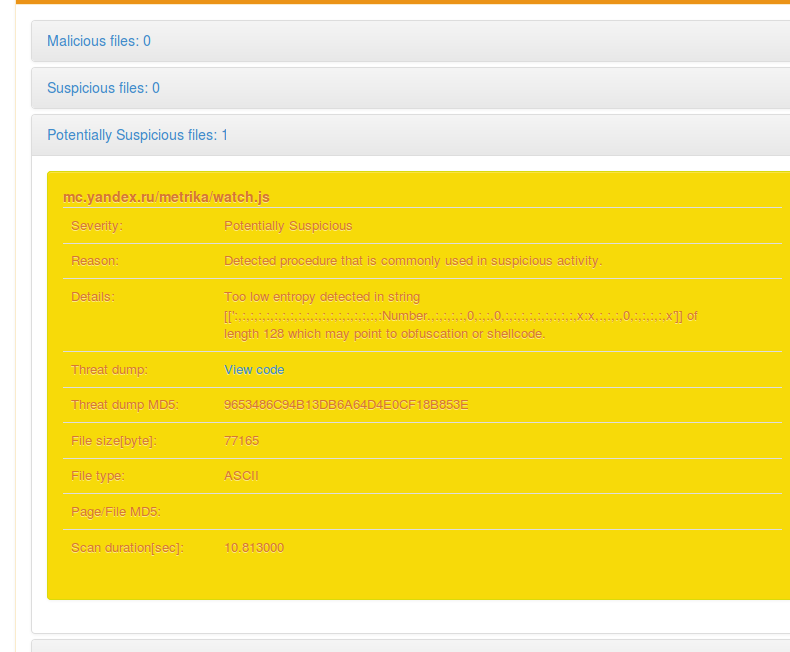 OK. Ни я, ни кто-либо из пользователей, редиректа не замечали (иначе бы обратную связь шапками закидали). Начал сканировать сервер (полностью) на вирусы и вредоносный код, ничего. Пишу, мол так и так, не понятно, где был замечен редирект, назовите, пожалуйста, страницу? На вопрос ответили вопросом — а какие запросы из поиска выпали. Ответил: да какие запросы, если сайта даже по набору домена в поиске нет, выдаются сайты упоминающие мой сайт, а моего вообще не видно. Два дня молчали, потом ответили, что мол редирект был замечен на главной. Опять начал проверять, уже сам сайт, на шеллы и вредоносный код. Ничего!