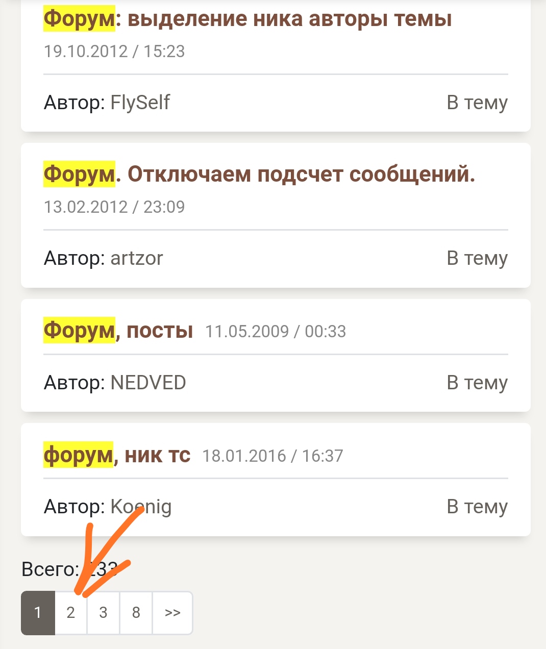 Навигация ломается при переходе на другую страницу в поиске по теме в форуме