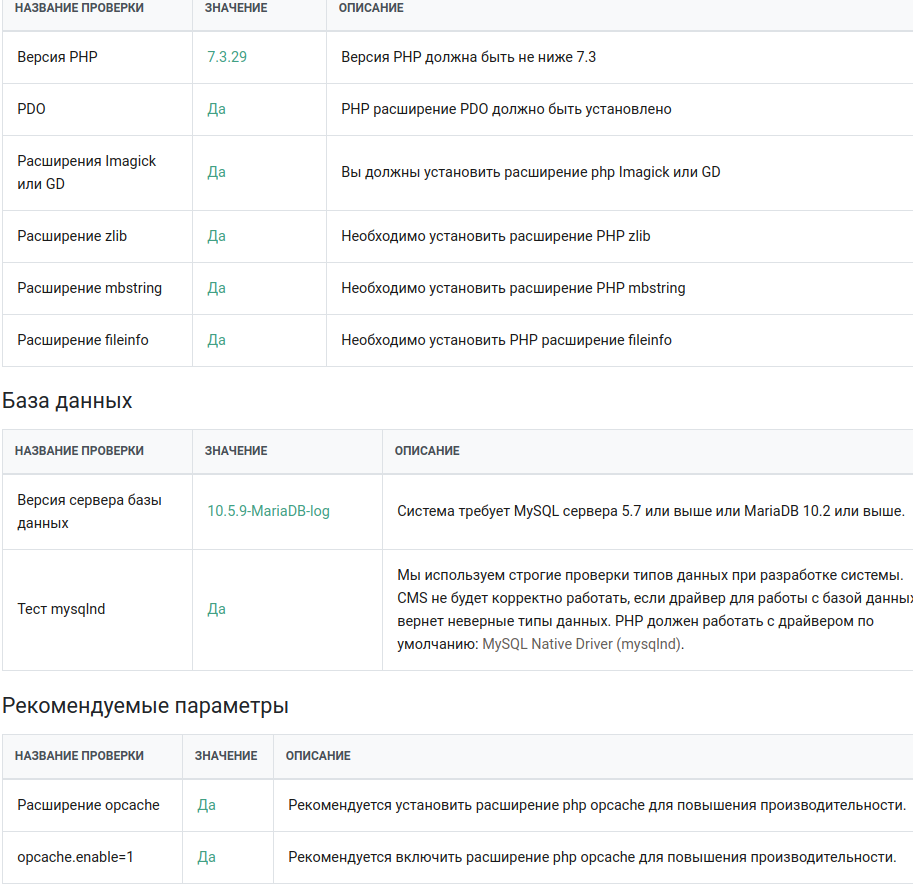 Smitti, Админ панель > Система > Проверка системы.
