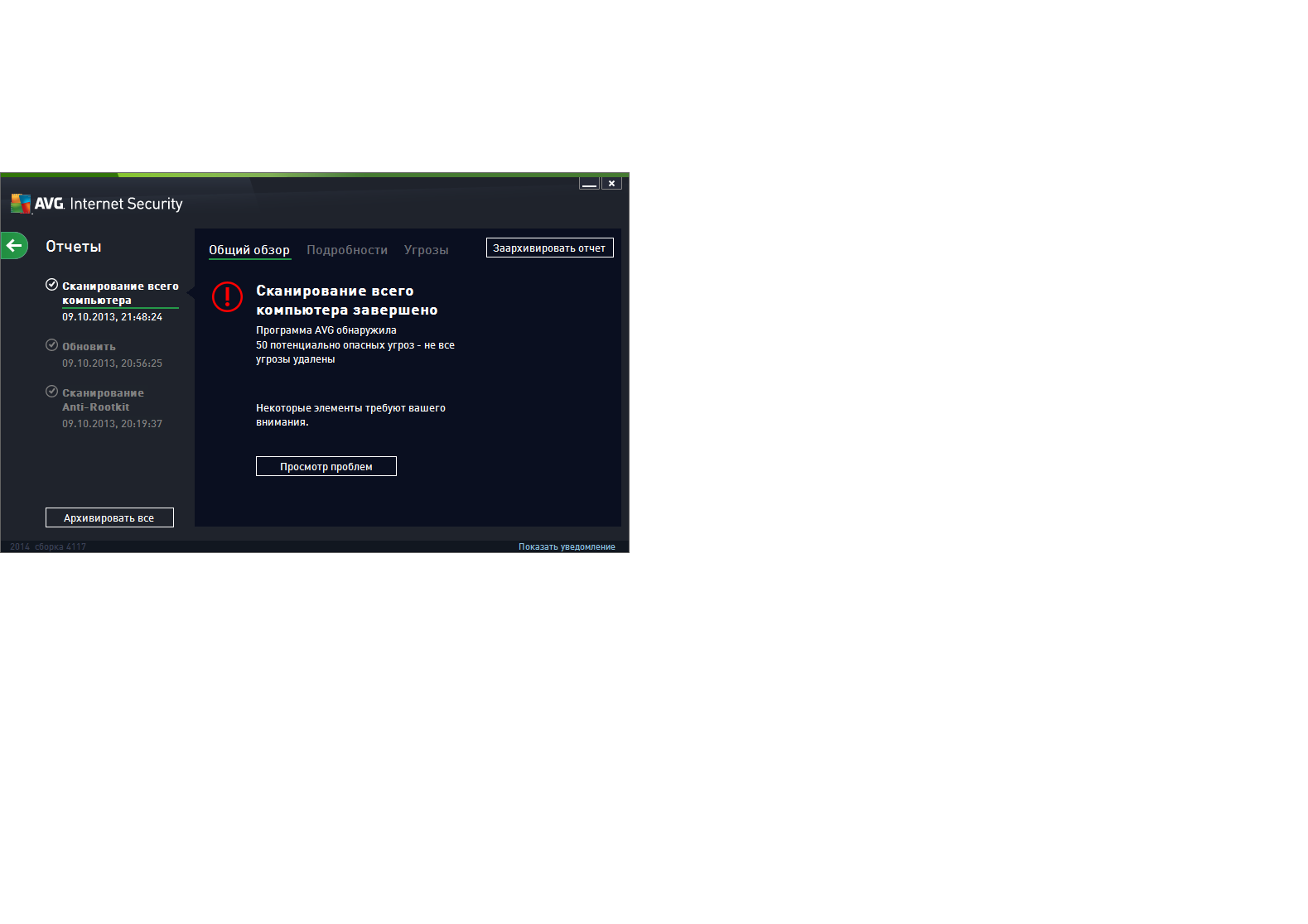 Щас скину скрины просто, и вы все поймете... Проверка на вирусы AVG Internet Security после проверки нашим антивирем. Попытка первая