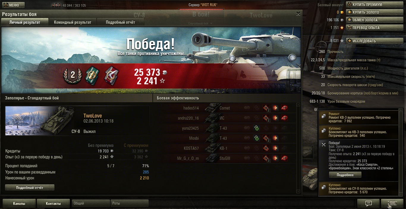 ааа ,я убил 2 и взводовец 3 ,там стаял ис -3 последний танк ! Я выцелил пальнул .Ужассс у него 51 хп осталось ! И его добили !