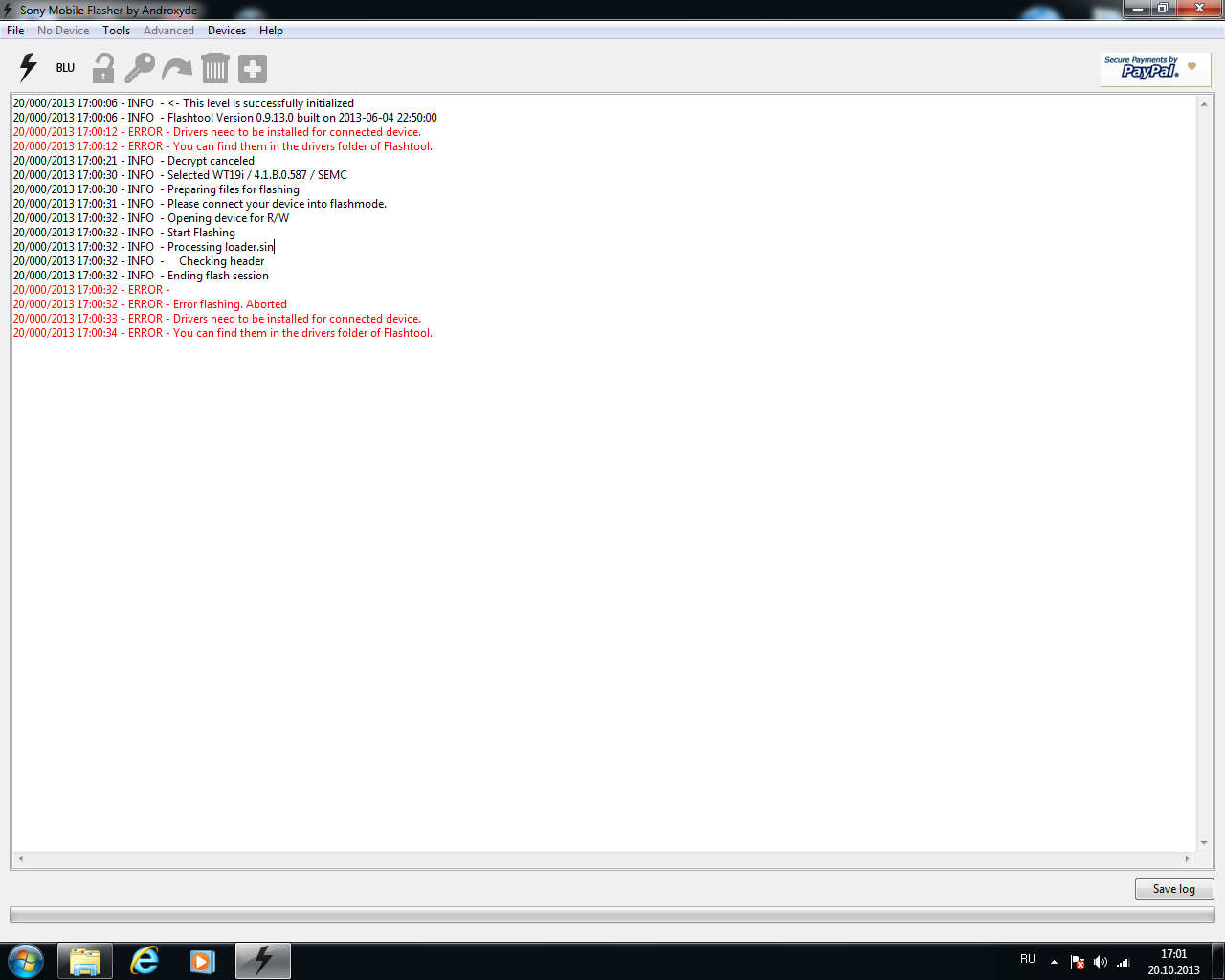 Драйвера ставить надо. Программа не видит устройство из-за этого.