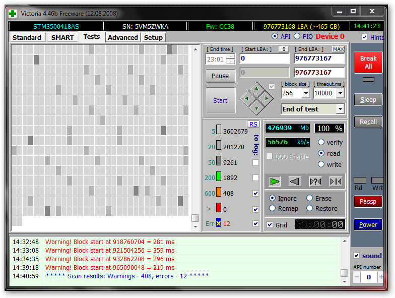 ReaLs (13.07.2012/09:09)Они показывают время потраченное на считывание информации с сектора. Чем выше время тем хуже. Впринципе их наличие еще ничего не значит, но их не должно быть так много как у тебя. Ну плюс у тебя еще и 12 совсем битых секторов. В общем жесткий начал сыпаться. Лучше сменить, но можно полностью снести все разделы с диска и по новой их отформатировать, по идее битые должны отсеяться и не попасть в файловую таблицу. Но Вот то что тебе нужно срочно сохранять информацию это факт. А уж остальные действия это сам решай, менять или отсрочивать ему время смерти.