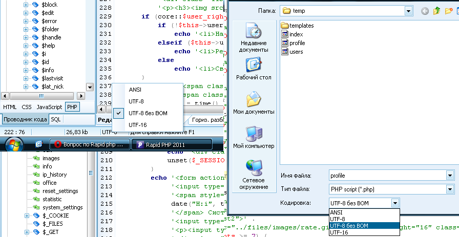 Screamer, ANCII, в настройках выбор кодировки только для новых файлов
