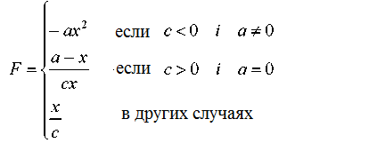 Функция F должна принимать действительное значение, если выражение (Ац МОД2 Вц) и НЕ (Ац ИЛИ Сц) не равно нулю, и целое значение в противном случае. Через Ац, Вц и Сц обозначены целые части значений а