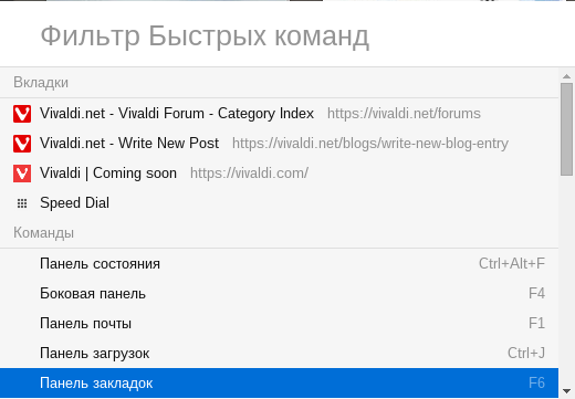 Я не буду останавливаться подробно на тех функциях, что уже стали привычными пользователям браузеров — вроде Экспресс-панели (хотя теперь на ней вы можете создавать свои тематические папки, включая вложенные) или боковой панели. Думаю, вы сможете самостоятельно поэкспериментировать и опробовать эти функции в работе. Отмечу лишь несколько интересных на мой взгляд. Для начала — Быстрые команды.