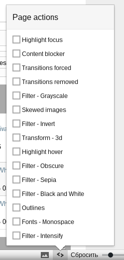 Есть и довольно любопытные функции. Например — пока не имеющая точного перевода с английского «Page actions»: