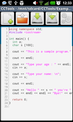 IDE для написания C/C++ программ непосредственно на андроид устройстве. Есть подсветка синтаксиса для С/C++/make файлов. Можно собирать и запускать консольные приложения и приложения Native Activity (на андроидах 2.3+).