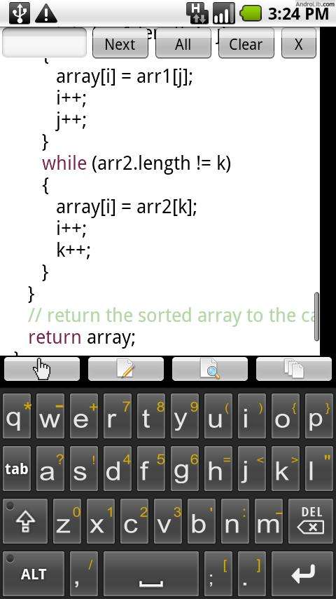 Android Маркет: market://details?id=com.touchqode.editor (~ 1.5 Мб)