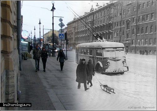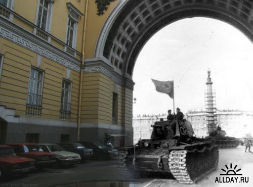 В настоящее время смотрю кино "Мы из будущего -2" и не могу молчать.Тема второй мировой для меня болезненная,не знаю почему Фотоподборку которую сейчас вы увидите сделана Серёжей Ларенковым, лично с автором не знакома, но ... Мне понравилась его идея совместить прошлое и настоящее в фотографии-вроде бы так просто, но ведь никто до него этого не делал-в лучшем случае было 2 снимка-вчера и сегодня, а вот объединить...Получилось отлично-прошлое как будто проявляется сквозь настоящее, и в этом есть своеобразный намек-невозможно жить в настоящем, не вспоминая прошлое.Эта грань очень размыта, как на фотографиях.От тех фотографий, где часть старого фото вмонтирована посреди снимка нынешнего -просто мороз по коже, как будто привидения появляются и люди, и здания.Тема Петербурга взята не случайно- бабушка и дедушка Сергея были жителями осажденного города.Сам Сергей- не профессиональный фотограф,а лоцман.После того, как эмоции от увиденного схлынут, начинаешь понимать, какой колоссальный труд был проделан им-найти фотографии, определить место, сфотографировать под этим же ракурсом,совместить, обработать...