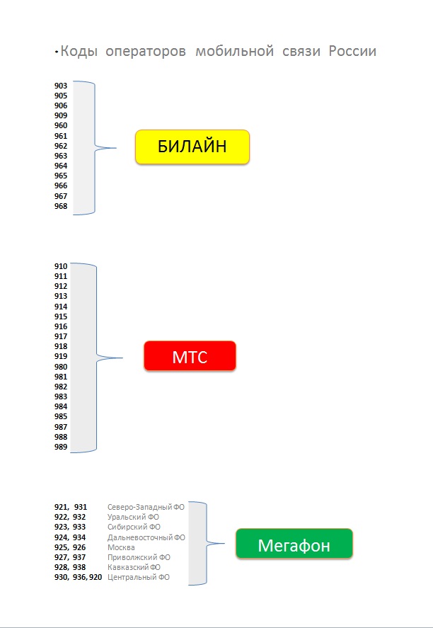 Коды операторов