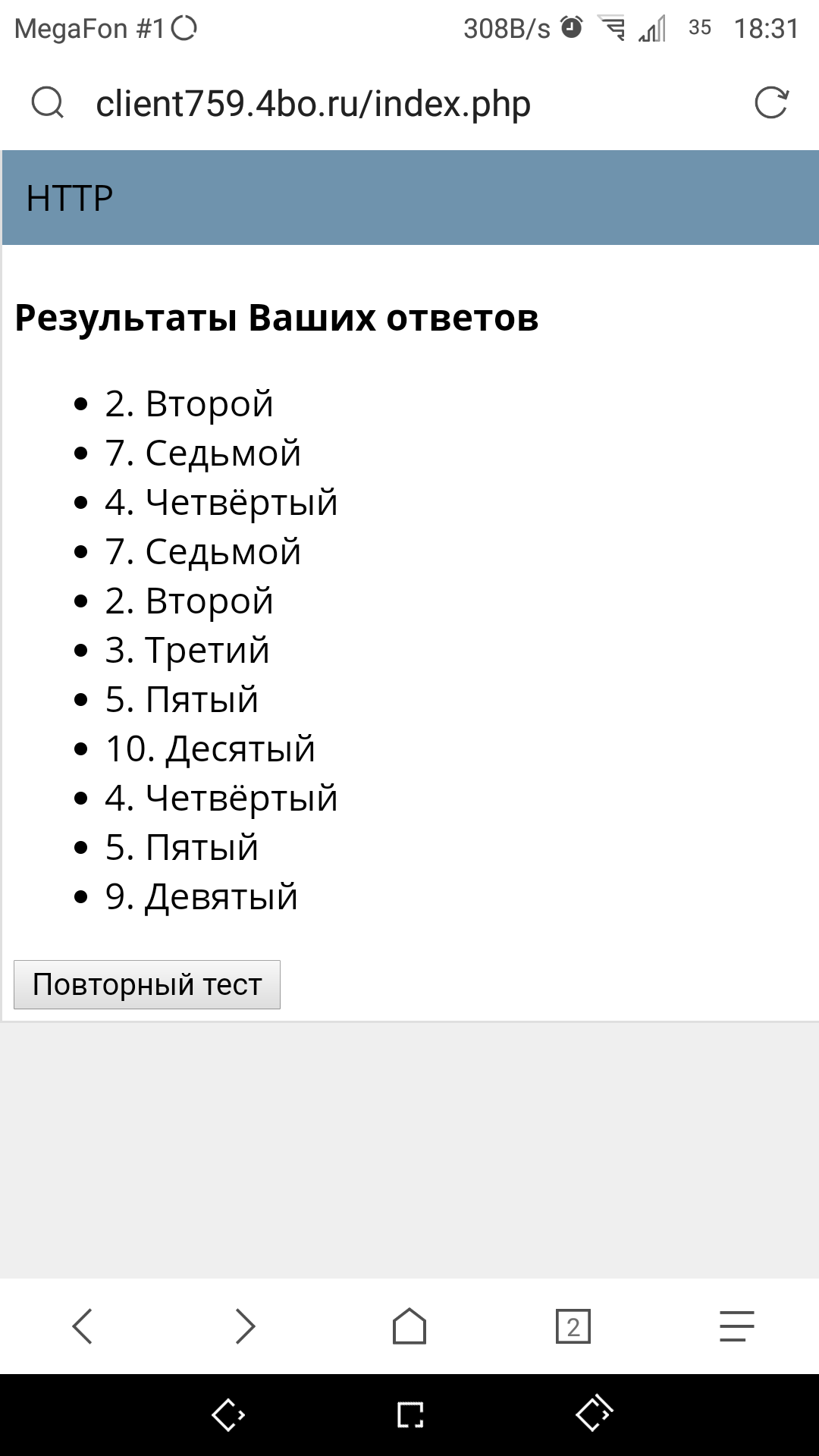 # ayzek (25.02.2020 / 14:11)Он работает независимо ни от Джона, ни от любой CMS в принципе. Добавить хедер с подвалом никому не составит труда. Что делает? Это скрипт-опросник, т.е., он отображает набор вопросов, и сохраняет те варианты ответов, которые были выбраны пользователем. А по окончании опроса - отображает все варианты ответов пользователя. Скрипт временно (сайт не мой) будет доступен по адресу: