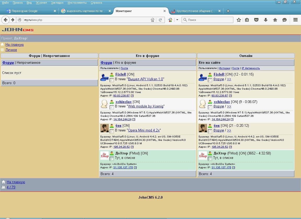 Мониторинг JohnCMS