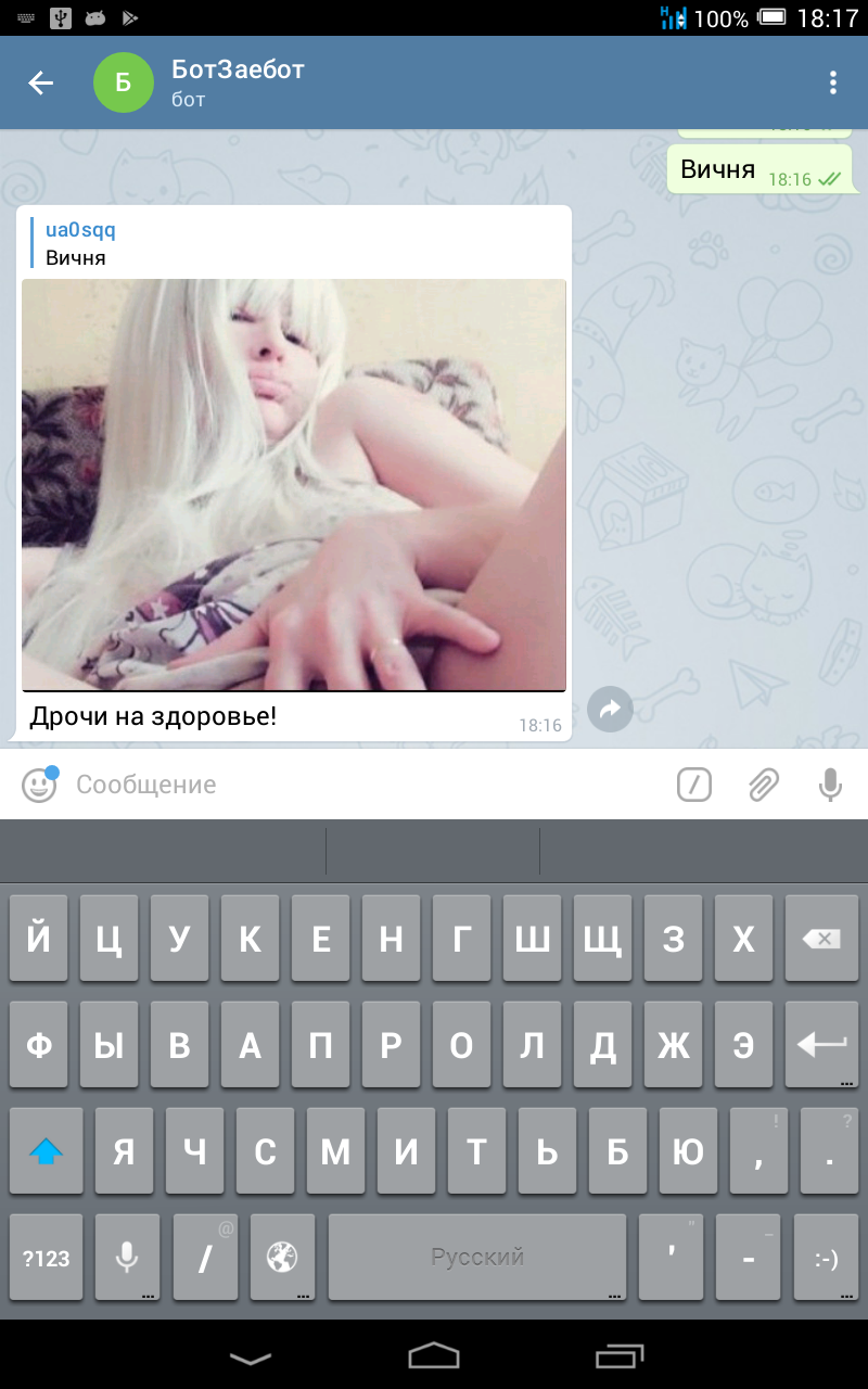 # ВЕТОЧКА (22.10.2018 / 17:43)Ну ок, не твой дух. Просто ты на столько популярна, что люди хотя тебя видеть по первому запросу)
