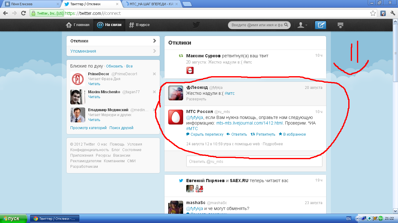 Пришел домой 20го числа написал в твиттер досаду о проишедшем в салоне мтс случае и поставил тег #мтс так они мне сегодня ответили