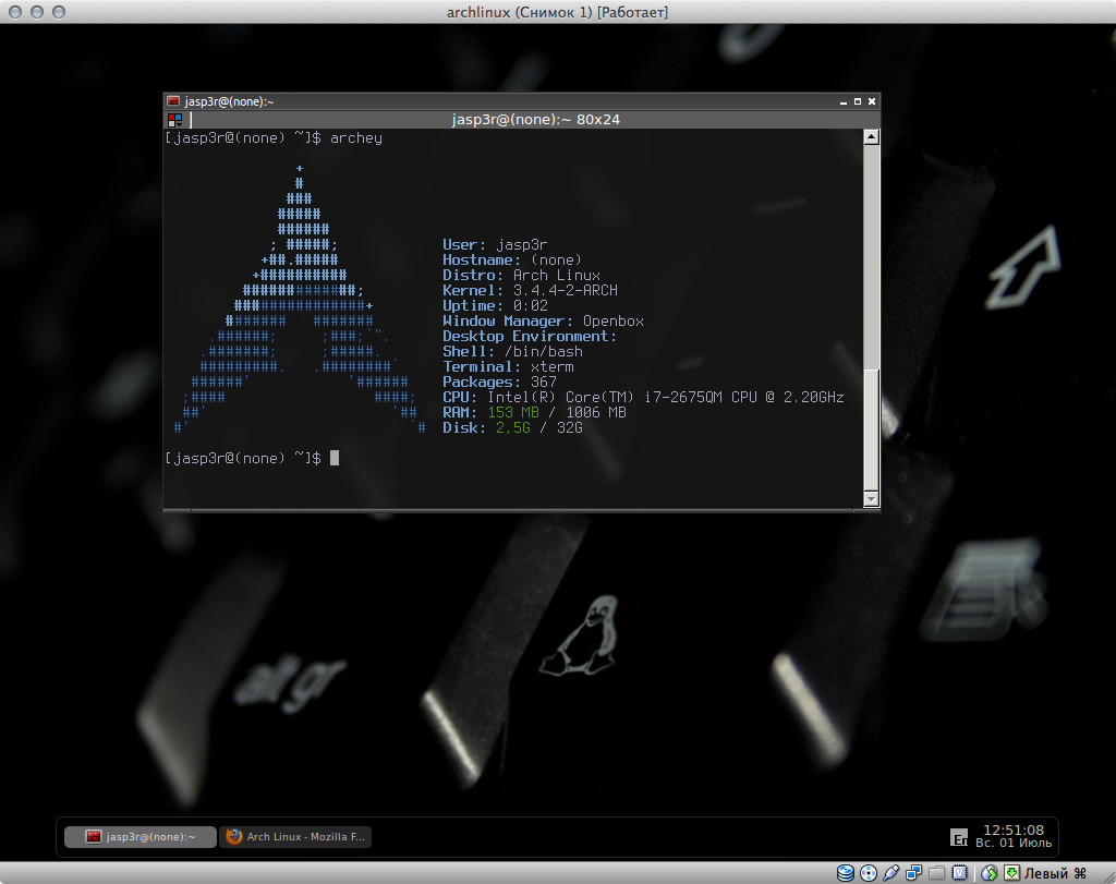 archlinux под вбокс. использую как локалхост, пробросил в домашнюю ос ![]()