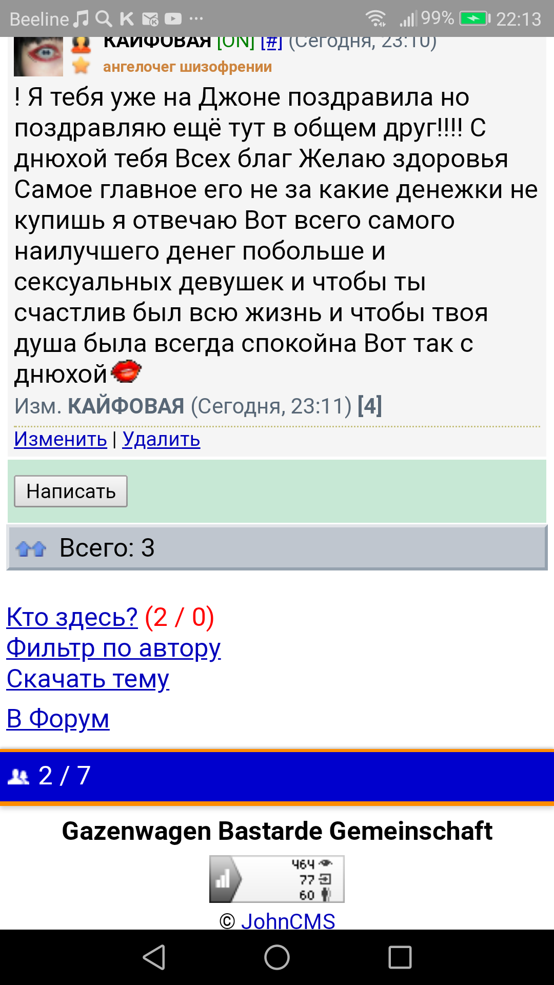 В общем с днём рождения Я тебя поздравляю Желаю тебе счастья здоровья и так далее Зайди на г.в. там тебя поздравляют