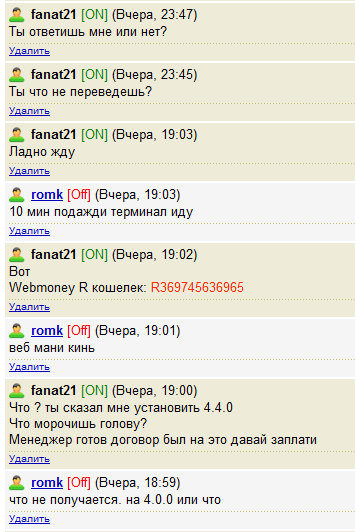 Юзер http://johncms.com/users/profi ... 32163 кидала. У нас был договор на то что я установлю johncms4.4.0 и фут менеджер а он мне 200руб. Но после завершения работы он перестал отвечать.