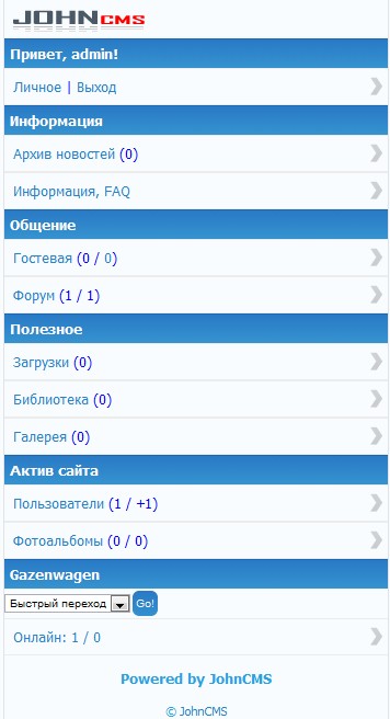 Продаю красивый дизайн в зелёных цветах для JohnCMS v4.4.0. Графики практически нету.