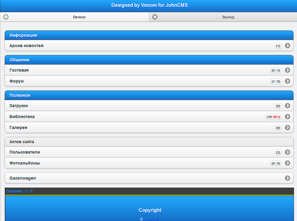 Продам тач дизайн на JohnCMS с заменой :