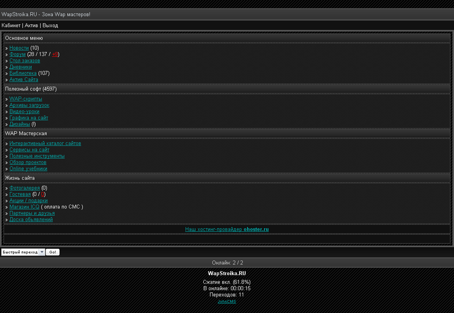 Продам дизайн, johncms 3.1. Цена 80wmr. Связть ICQ 7-718-290 и ЛС.
