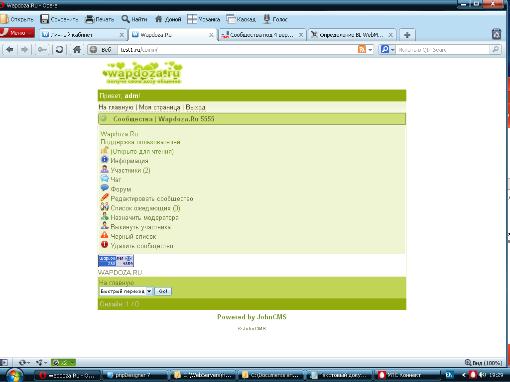 Продам модуль действий под JohnCMS 3.2.2