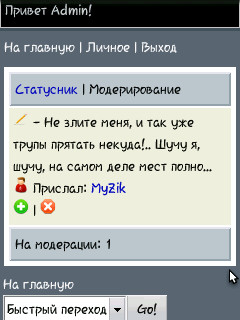 [+] Пользователи, с правами от 5 и более, могут модерировать или отклонять новые статусы.
