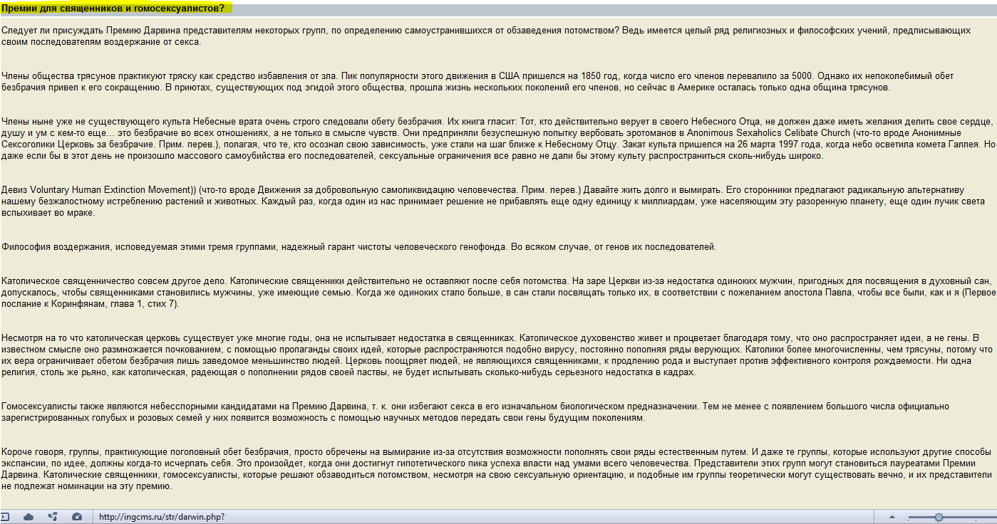 Пример будет завтра (если инет неподведет по адресу Премии Дарвина )