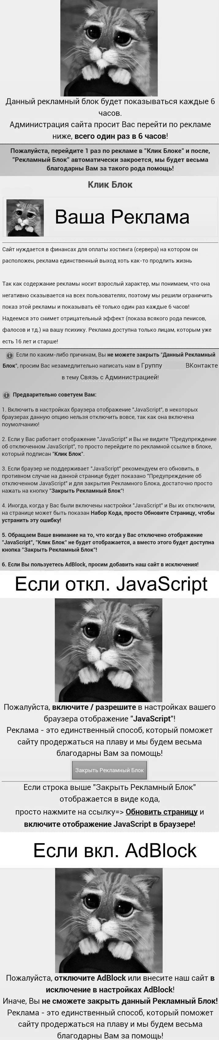 4. В хаке есть защита от включенного AdBlock, с просьбой отключения. Иначе, пользователь который не внёс ваш сайт в исключение, не сможет Закрыть Рекламный Блок.